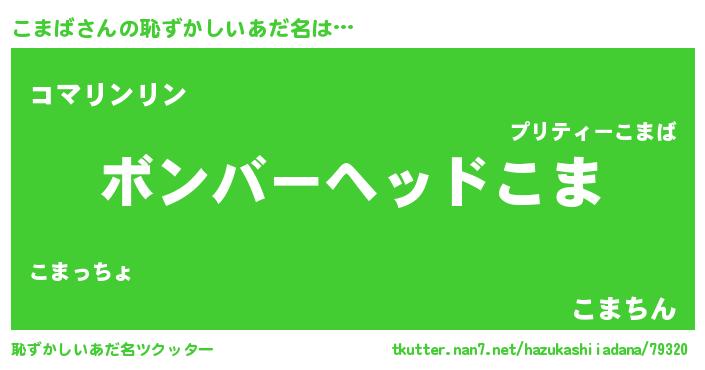 | ヒーロー風カッコイイあだ名 | 『慈愛の使者こまば』『暗黒騎士コマ』 |
