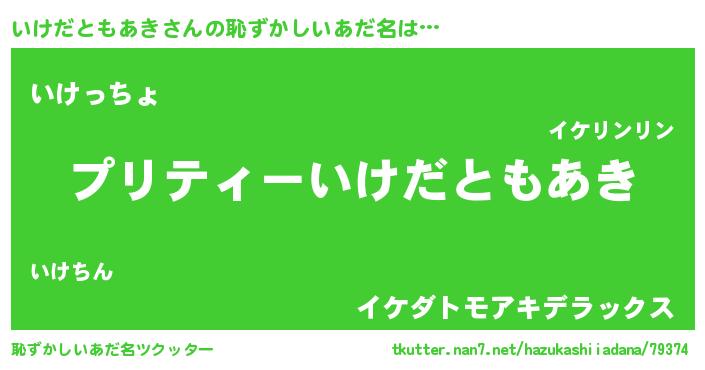 | 男性向けラノベタイトル風あだ名 | 『いけだともあきに滅ぼされるだけの簡単なお仕事です』 |