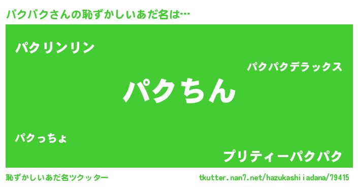 | 胡散臭い通販商品みたいなあだ名 | 『前代未聞の健康食品…その名も「パクパク」』 |