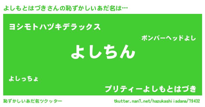 | ヘコむあだ名 | 『よしもとはづき(遠い目)』『よしふぇ~』 |