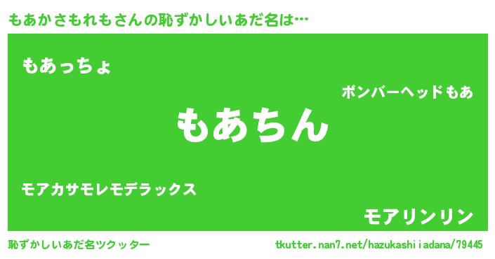| ヘコむあだ名 | 『もあかさもれも(震え声)』『つくし』 |