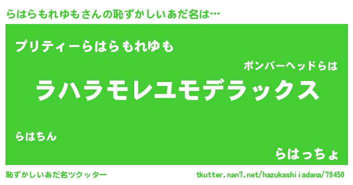 | 意味不明あだ名 | 『自称らはらもれゆも』 |