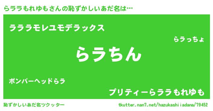 | ヘコむあだ名 | 『らララもれゆも(苦笑)』『らラふぇ~』 |