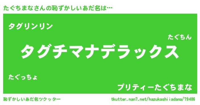 | 意味不明あだ名 | 『自称たぐちまな』『ペロリンたぐちまな』 |