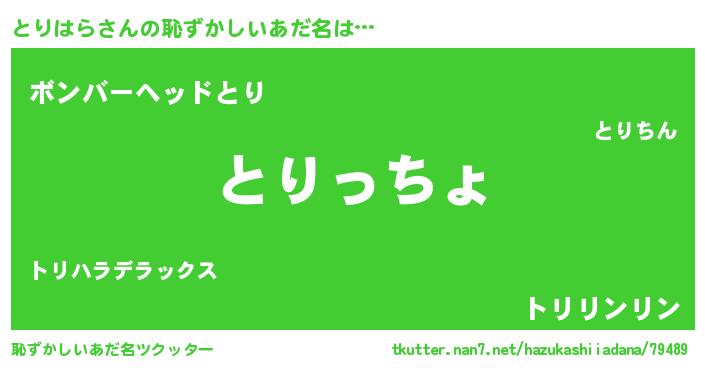 | ヒーロー風カッコイイあだ名 | 『ウルトラとりはらマン』『幻影騎士トリ』 |