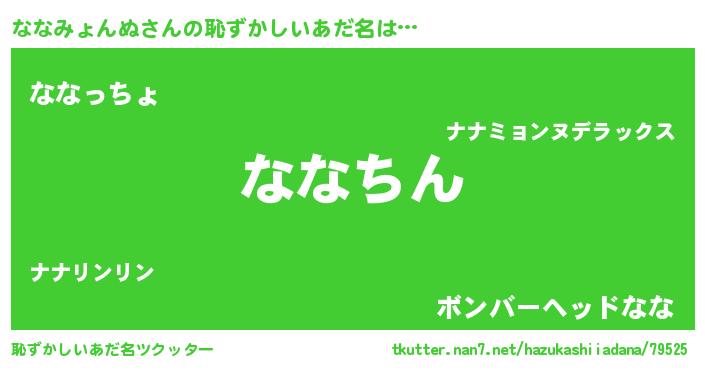 | 男性向けラノベタイトル風あだ名 | 『ななみょんぬという概念が存在しない退屈な世界 』 |