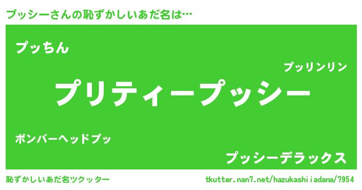 | 男性向けラノベタイトル風あだ名 | 『プッシーの憂鬱』 |