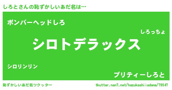| 男性向けラノベタイトル風あだ名 | 『魔弾の王としろと』『シロトスレイヤー』 |