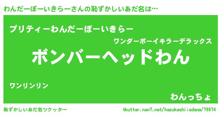| 男性向けラノベタイトル風あだ名 | 『この素晴らしい世界にわんだーぼーいきらーを!』 |