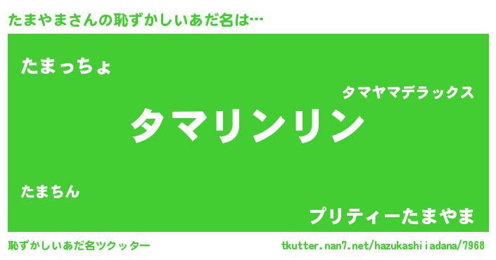 | ヒーロー風カッコイイあだ名 | 『銀牙騎士タマ』『ウルトラたまやまマン』 |