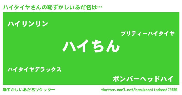 | ヒーロー風カッコイイあだ名 | 『ネオハイタイヤ』『仮面ハイダー』 |