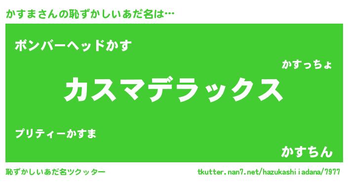 | ヒーロー風カッコイイあだ名 | 『最強戦士カスマ』『仮面カスダー』 |