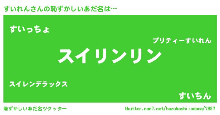 ヘコむあだ名 | 『すいを』『豆乳』『すいれん(笑)』 |