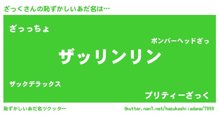 | ヒーロー風カッコイイあだ名 | 『暗黒騎士ザッ』『ウルトラざっくマン』 |
