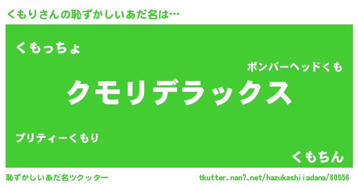 | ヘコむあだ名 | 『豆乳』『くもり(笑)』『くももー』 |