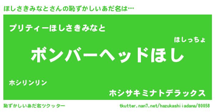 | 肩書あだ名 | 『ほしさきみなと上級大将』 |