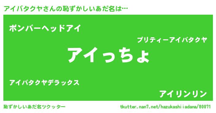 | 意味不明あだ名 | 『アイバタクヤフォーエバー』 |