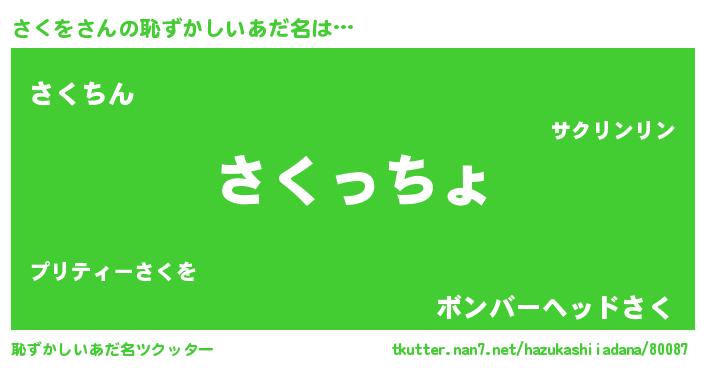 | 意味不明あだ名 | 『さくをフォーエバー』『永久保存さくを』 |