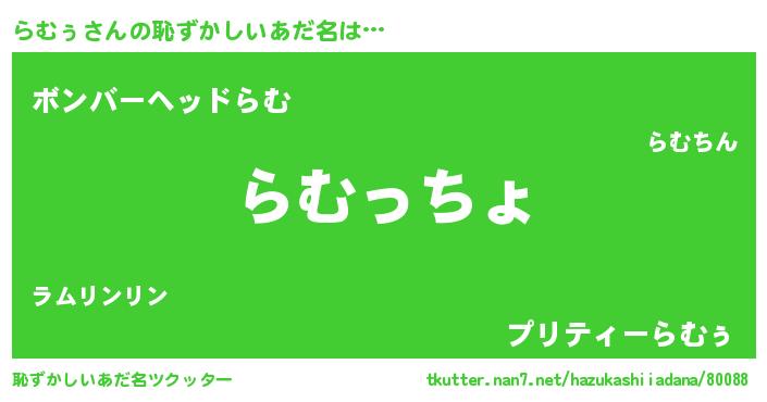 | ヒーロー風カッコイイあだ名 | 『仮面ラムダー』『ウルトラらむぅマン』 |