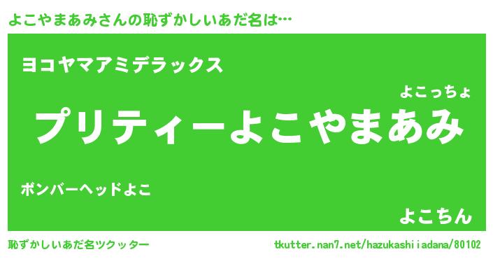 | 欧米人風あだ名 | 『よこやまあみ・ステッグマイヤー』 |