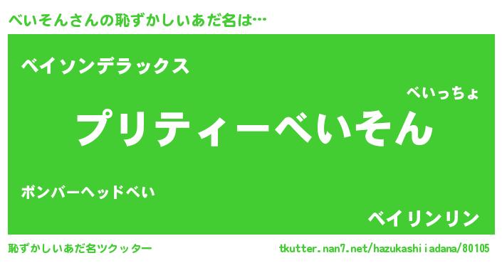 | 意味不明あだ名 | 『ペロリンべいそん』『自称べいそん』 |