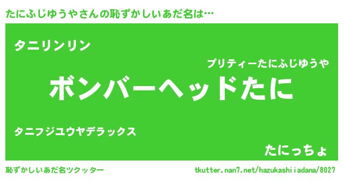 | 男性向けラノベタイトル風あだ名 | 『ノーゲーム・ノータニフジユウヤ』 |