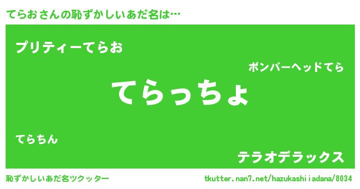| 意味不明あだ名 | 『てらおフォーエバー』『ペロリンてらお』 |