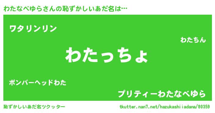 | 意味不明あだ名 | 『なめこ科わたなべゆら属』 |