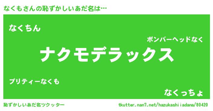 | ヘコむあだ名 | 『なくも(爆)』『つくし』『なくお』 |