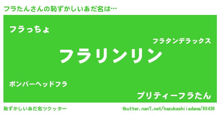 | ヘコむあだ名 | 『フラっぺ』『つくし』『フラふぇ~』 |