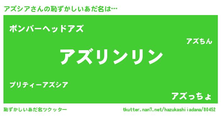 | 意味不明あだ名 | 『とにかく怪しいアズシア』 |