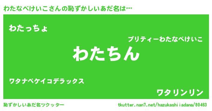 | 可愛いあだ名 | 『ぽよわた』『わたなべけいこママ』 |