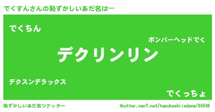 | 男性向けラノベタイトル風あだ名 | 『でくすんに滅ぼされるだけの簡単なお仕事です』 |