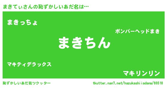 | ヘコむあだ名 | 『まきてぃ(笑)』『豆乳』『まきを』 |