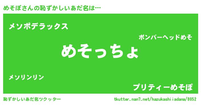 | 伝説のあだ名 | 『秘められし忍者めそぽ』 |