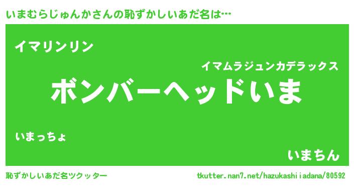 | 男性向けラノベタイトル風あだ名 | 『冴えないいまむらじゅんかの育てかた』 |