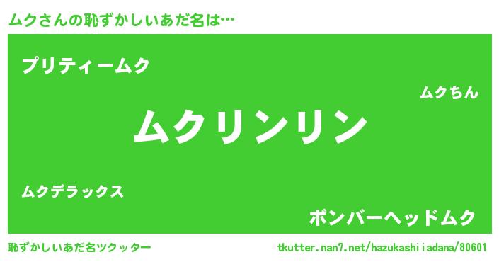 | ヘコむあだ名 | 『ムクっちょ』『ムクにー』 |