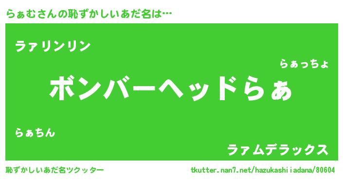 | ヒーロー風カッコイイあだ名 | 『友情の使者らぁむ』『仮面ラァダー』 |