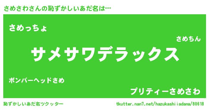 | 胡散臭い通販商品みたいなあだ名 | 『テレビで話題の高麗人参…その名も「さめさわ」』 |