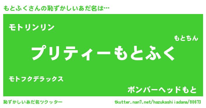 | 意味不明あだ名 | 『住所不定無職もとふく(2歳)』 |