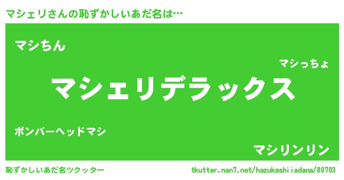 | ヘコむあだ名 | 『マシェリ(笑)』『マシぷりん』 |