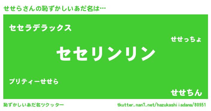 | ヒーロー風カッコイイあだ名 | 『幻影騎士セセ』『超時空戦士セセラ』 |