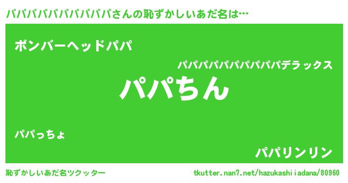 | 意味不明あだ名 | 『住所不定無職パパパパパパパパパパ(4歳)』 |