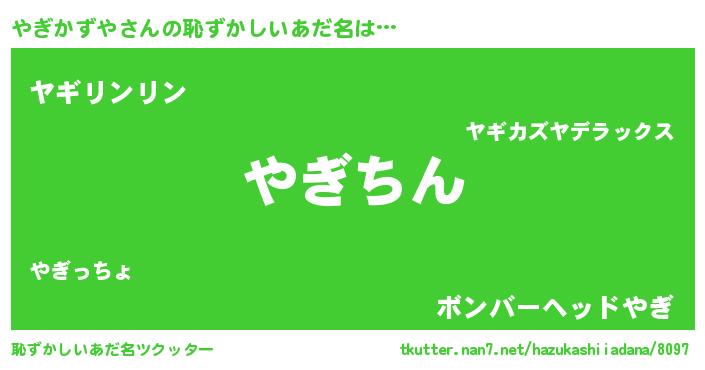 | 意味不明あだ名 | 『住所不定無職やぎかずや(6歳)』 |