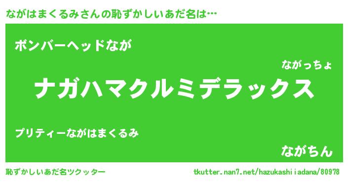 | 欧米人風あだ名 | 『ダレノガレながはまくるみ』 |
