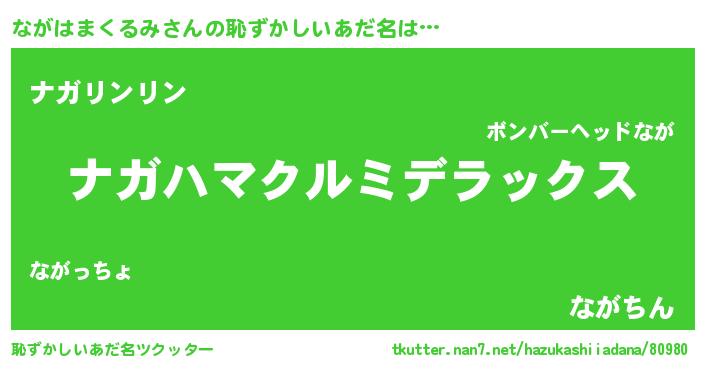 | 男性向けラノベタイトル風あだ名 | 『ながはまくるみに滅ぼされるだけの簡単なお仕事です』 |