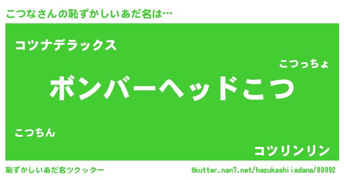 | ヒーロー風カッコイイあだ名 | 『仮面コツダー』『正義の使者こつな』 |