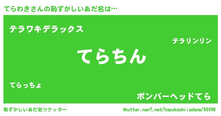 | ヘコむあだ名 | 『てらわき(遠い目)』『てらっ子』 |