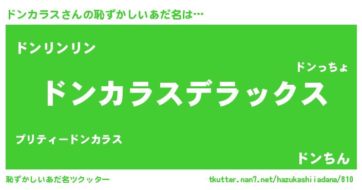 | 意味不明あだ名 | 『自称ドンカラス』『永久保存ドンカラス』 |