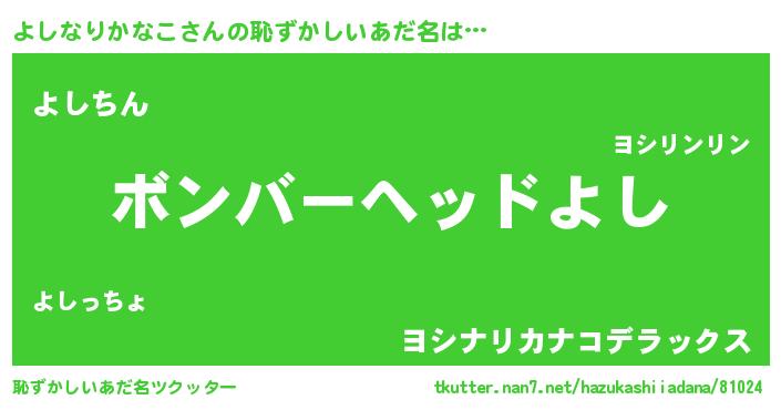 | ヘコむあだ名 | 『よしなりかなこ(爆)』『よしっ子』 |